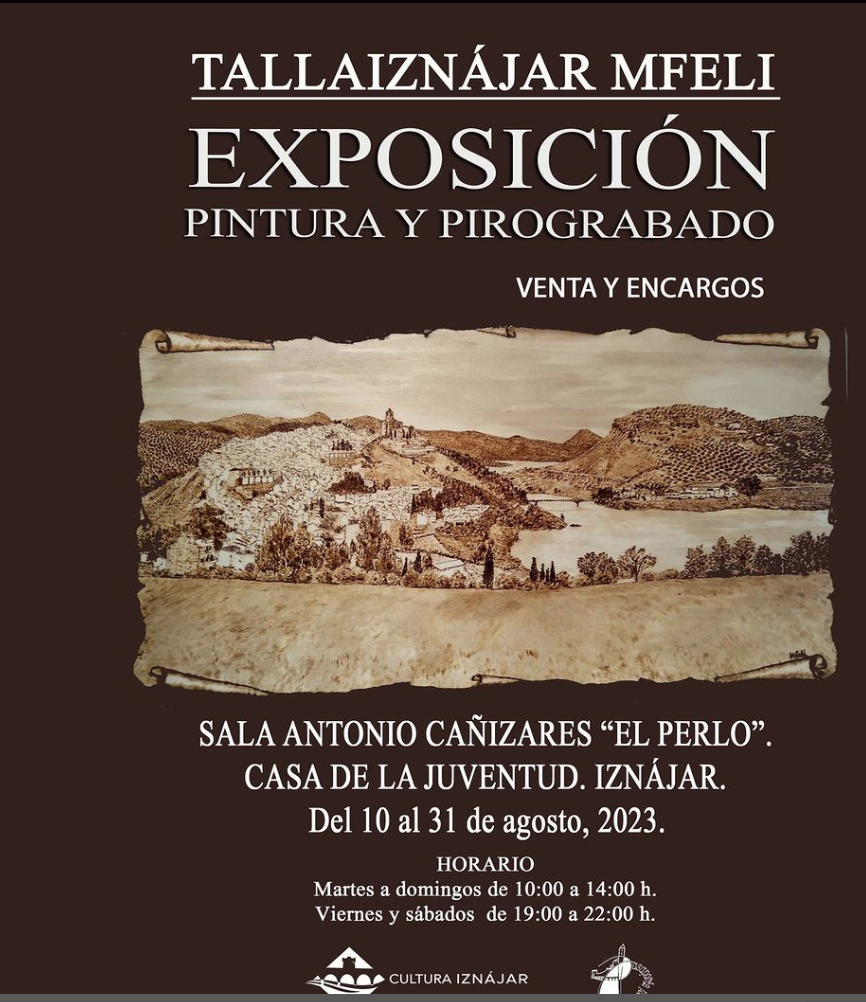 Exposición de pinturas y pirograbados de TallaIznájar Mfeli, a cargo de Mª Feli López Lobato.